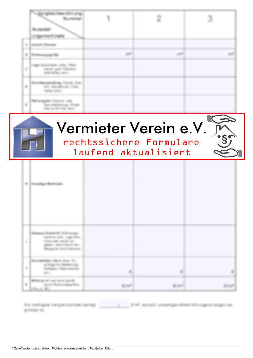 Alle von Ihnen auszufüllenden Felder sind farblich gekennzeichnet. Eine vom Mieter rückzusendende Zustimmungserklärung ist enthalten.