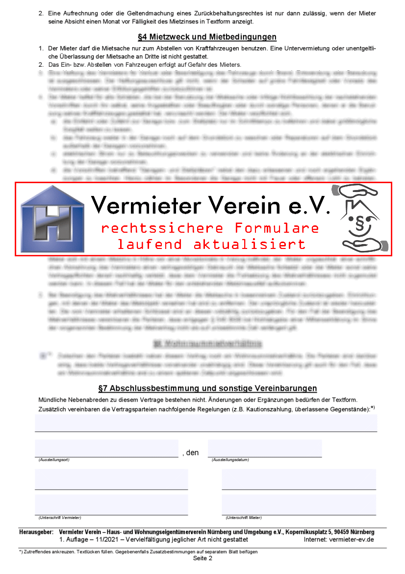 Mit diesem Formular vermieten Sie Garagen oder Stellplätze rechtssicher.