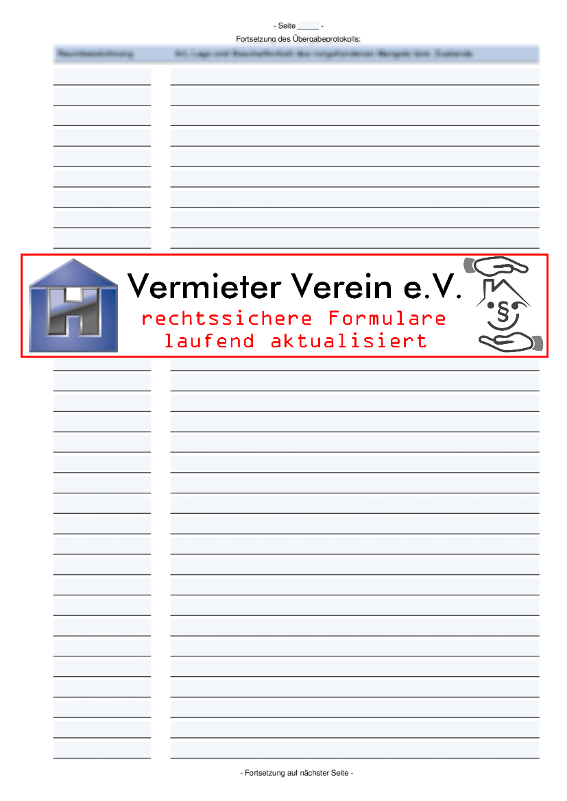- Seite 1: Angaben zu Vermieter, Mieter, Wohnung und Übergabezeitpunkt. Beginn der Zustandsliste